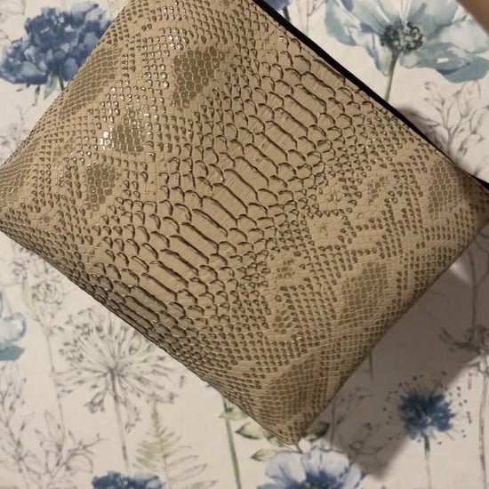 Add a touch of luxury to your daily routine! This elegant cosmetic bag in gold with an eye-catching snake skin pattern is a perfect blend of style, elegance, and functionality. Handcrafted from the finest faux leather, it catches the eye and adds character.